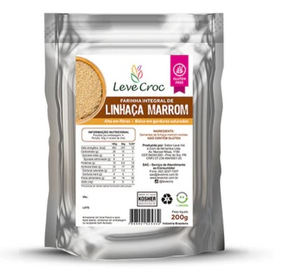 A Farinha Integral de Linhaca Marrom Leve Croc e um alimento funcional rico em omega 3 fibras e antioxidantes naturais perfeito para quem busca uma alimentacao equilibrada e nutritiva Produzida com um rigoroso controle de qualidade nossa linhaca passa por um processo de lavagem e secagem em forno com temperatura controlada garantindo a eliminacao de impurezas sem comprometer seus nutrientes Apos o resfriamento e moida em nosso proprio moinho sem qualquer adicao de conservantes artificiais mantendose integral e preservando seu oleo natural essencial para o bom funcionamento do organismo